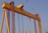 Pórtico de navio usado no local de fabricação de navios e docas, sua tarefa é colocar todas as peças necessárias para a fabricação do navio (costelas, aço, aço, etc.) desde o transporte terrestre até o local de fabricação. este trabalho de transporte deve ser capaz de completar a tarefa em uma jornada muito longa em transporte rapidamente. portanto, o número de guindastes decidido, o suficiente para alcançar a área da doca de toda a fundação, e cada guindaste interfere mutuamente um com o outro, em princípio.