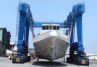 O guindaste de manuseio de barcos e iates inclui os seguintes itens: estrutura principal, bloco de rodas móveis, mecanismo de elevação, mecanismo de direção, sistema de transmissão hidráulica e sistema de controle elétrico. A estrutura principal é do tipo N, que pode transferir o barco / iate com altura superior à altura do guindaste.